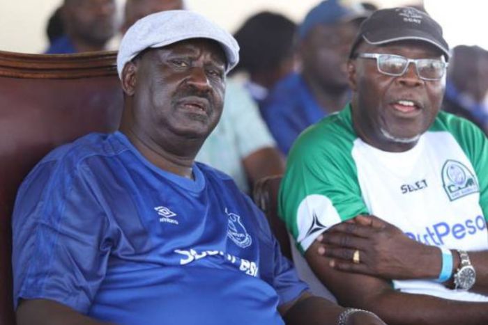 Raila Odinga together with Gor Mahia chairman Ambrose Rachier at a past match. © Standard