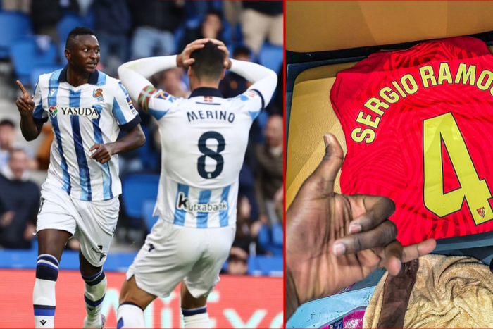 Real Madrid legend Sergio Ramos has sent Nigerian striker Umar Sadiq his match-day jersey to congratulate him for his stunning strike to help Real Sociedad beat Sevilla.
