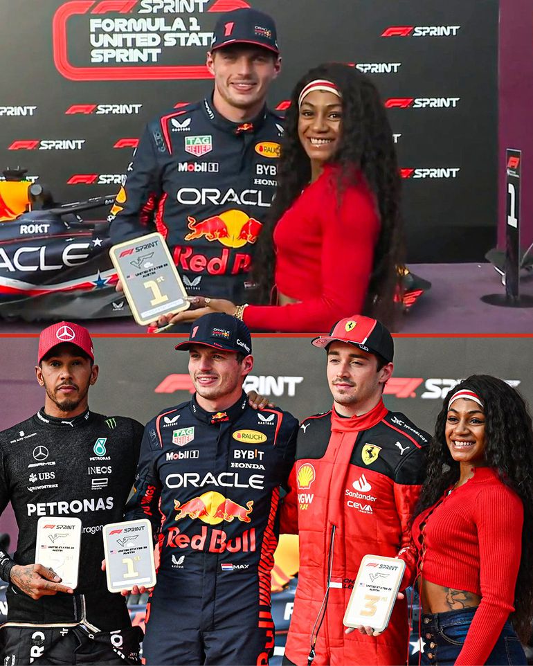 World's fastest woman Sha'Carri Richardson had the privilege of presenting the fastest F1 driver in the world, Max Verstappen, Lewis Hamilton and Charles Leclerc their awards after the sprint race in Austin, Texas.