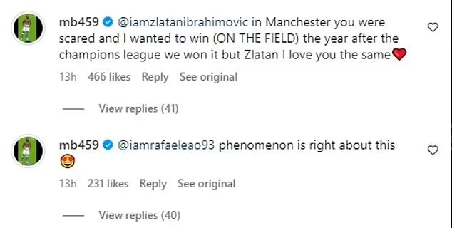 In the post, Balotelli wrote, “In Manchester you were scared and I wanted to win (on the pitch). The year after We won the Champions League anyway, but Zlatan, I still love you.”