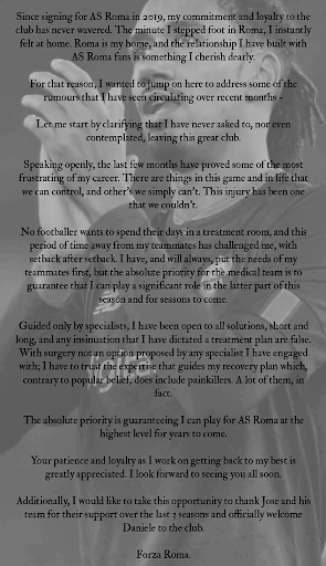 He denied reports suggesting that he had gone against medical recommendations, refused surgery or painkillers, or requested to leave Roma. Instead, Smalling stated that he has always prioritized the needs of his teammates and the club, and that he has been following the advice of medical specialists, which did not include surgery as an option.