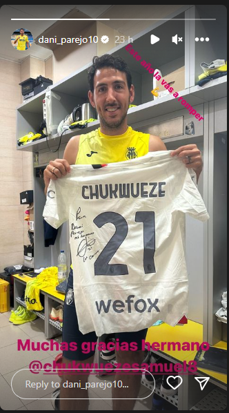 Parejo revealed this in a post on his Instagram story, with the former Real Madrid man thanking Chukwueze for the gift.