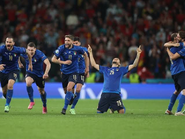 In a thrilling Euro 2020 semi-final, Italy and Spain played out a dramatic 1-1 draw after extra time, with Federico Chiesa and Alvaro Morata scoring for their respective teams. Italy prevailed 4-2 in the penalty shootout, with Gianluigi Donnarumma's heroics in goal sending Italy to the final, where they eventually lifted the trophy.