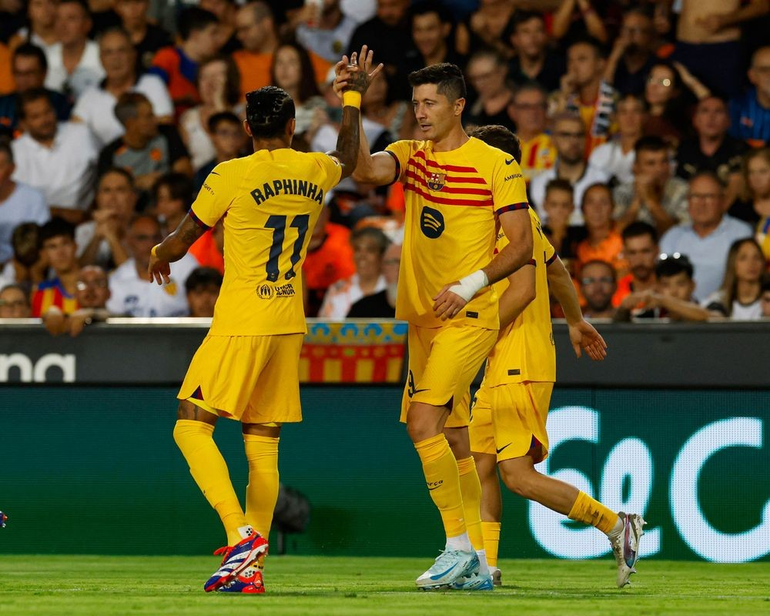 Szczesny (GK); Kounde, Cubarsi, Martinez, Balde; Casado, Pedri; Yamal, Gavi, Raphinha; Lewandowski