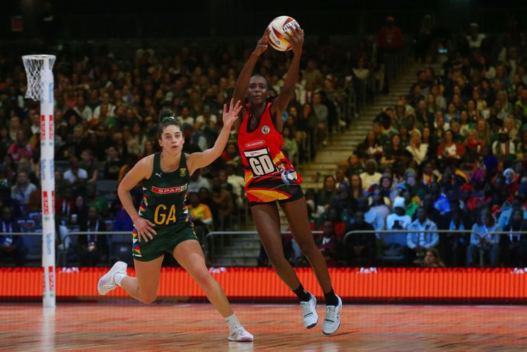 She Cranes Falidah Kadondi (GD) keeps the ball away from a Proteas' prayer, Kadondi was starting her first World Cup match