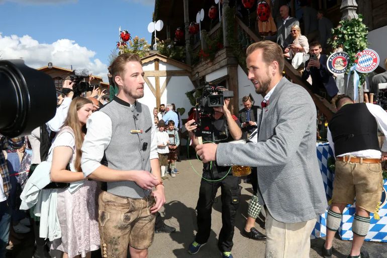 The team seemed to be having a good time at the Munich festival, including Kane who got to meet his lookalike Steffen.