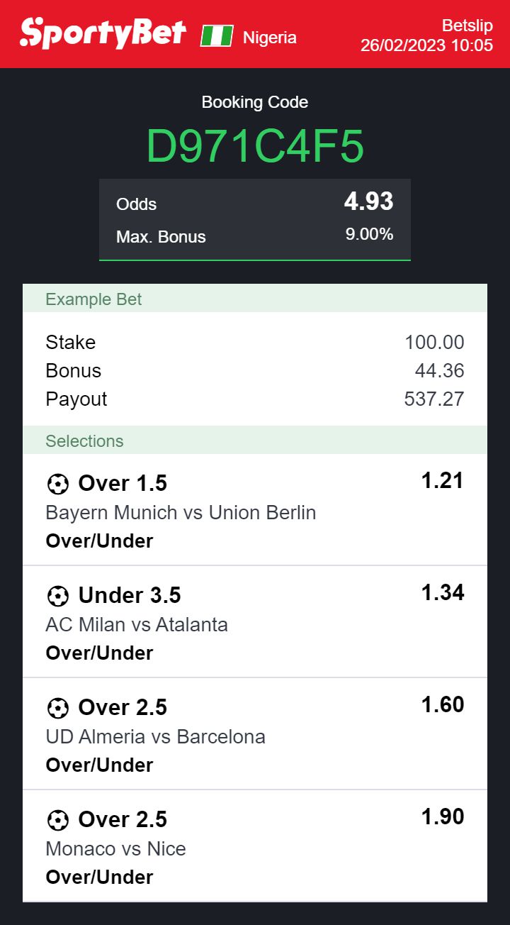 Total odds on Sportybet: 4.93 odds