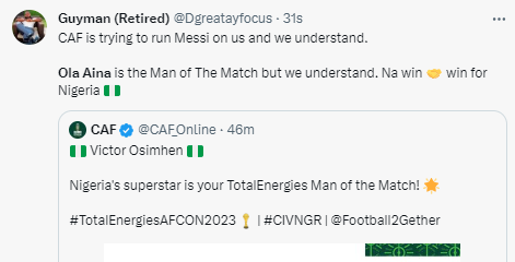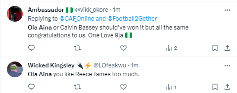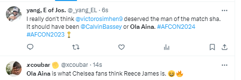 There were Nigerian football fans who believed that just like captain William Troost-Ekong, Aina could also have been selected Man of the Match.
