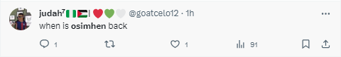 Osimhen got injured playing for the Super Eagles against Saudi Arabia in a friendly last month and Nigerians lamented his absence.