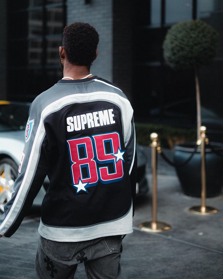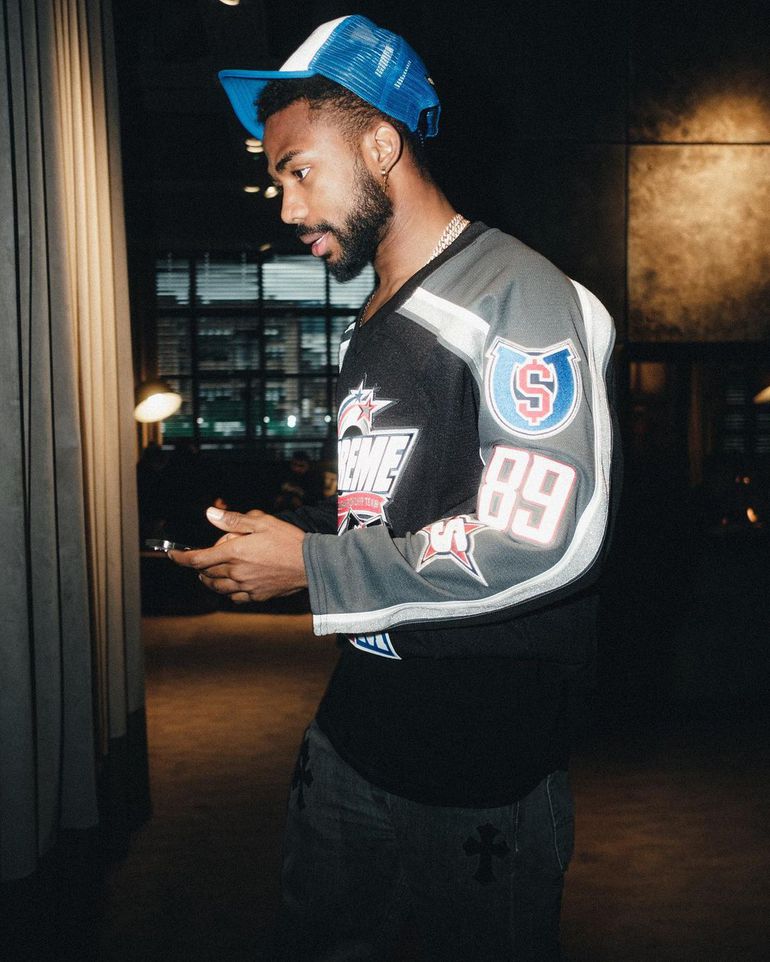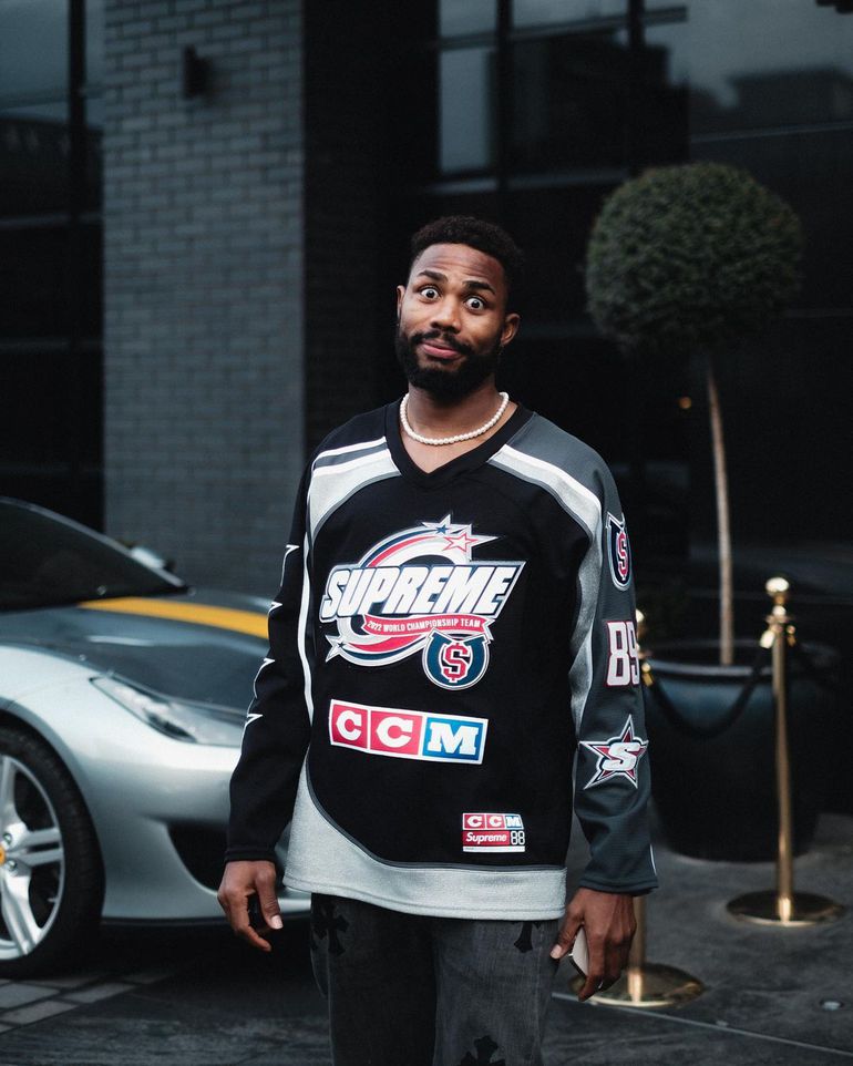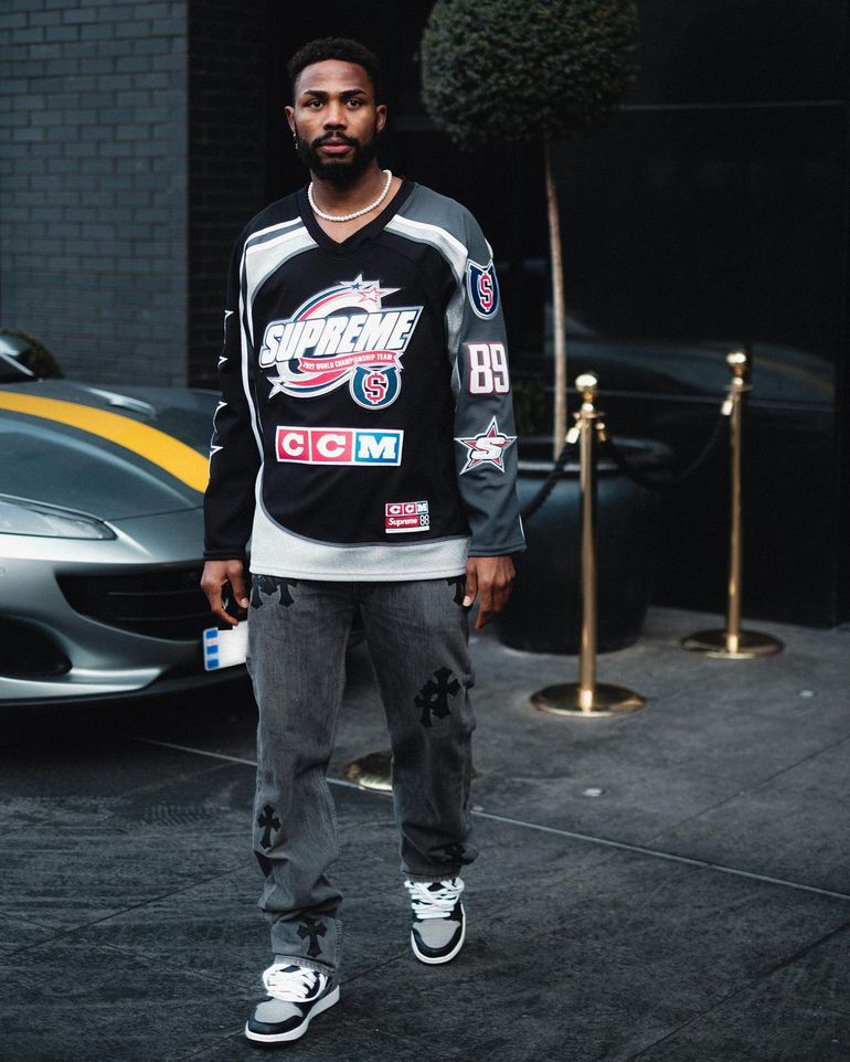 The 25-year-old forward showed off a host of photos of himself in different poses rocking a Black Supreme CCM All Stars Hockey Jersey  worth around N368,550 (€455) and a Black Leather Cross Jeans Loose Straight Pants and a Nike Jordan Mens Air Jordan 1 Low Golf worth N133,120 ($180).