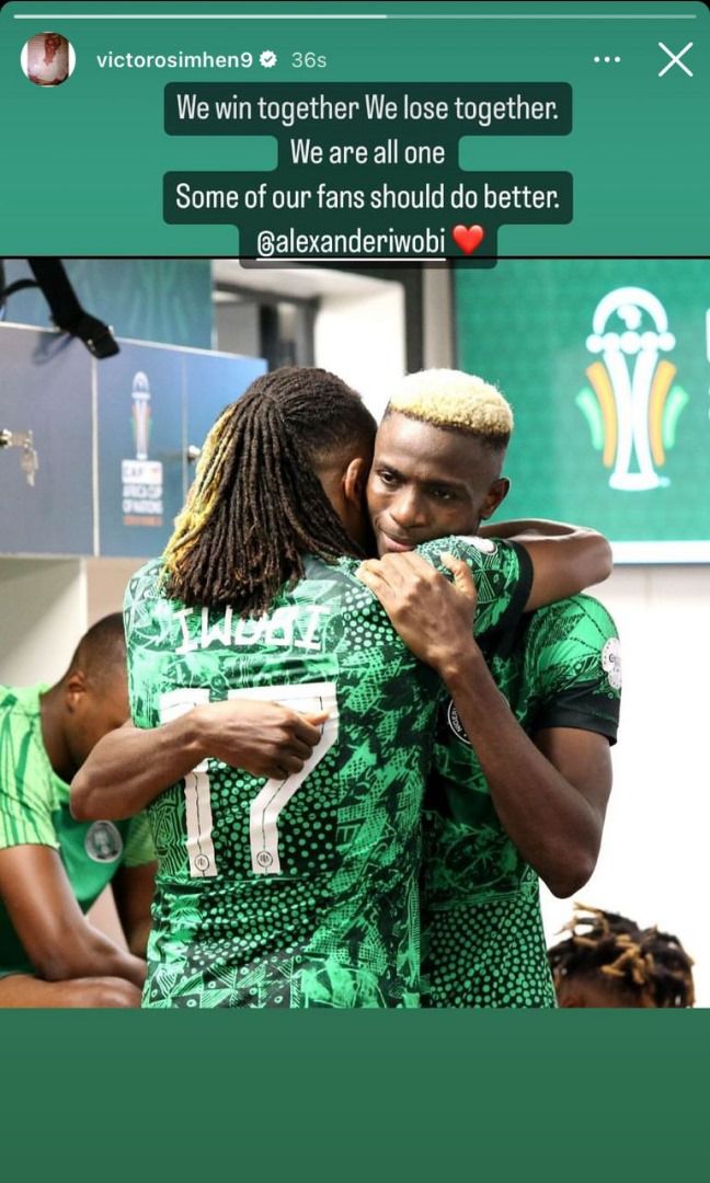 "We win together, We lose together. We are all one. Some of our fans should do better @alexanderiwobi ❤," Osimhen's post reads, a clear call for empathy and understanding from the fanbase.