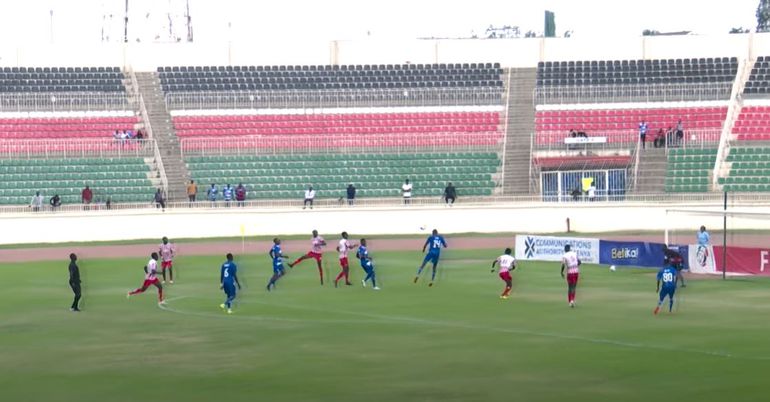 He then opted to pass the ball wide to left-back Vincent Mahiga, who whipped in an early cross to substitute Brian Yakhama, but the former Talanta forward headed the ball straight at the keeper.