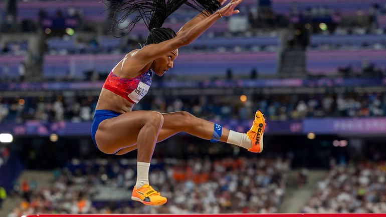 She captured Olympic gold at the Paris Games with a remarkable jump of 7.10m, significantly ahead of Germany's Malaika Mihambo, who finished with a 6.98m jump, and fellow American Jasmine Moore, who posted a 6.96m jump.