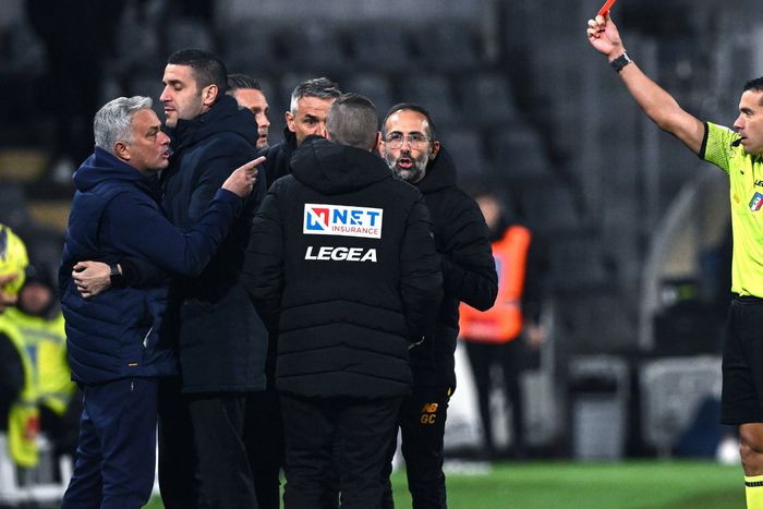 An angry Jose Mourinho was sent off during AS Roma’s 2-1 Serie A defeat at the hands of Cremonese on Tuesday night.