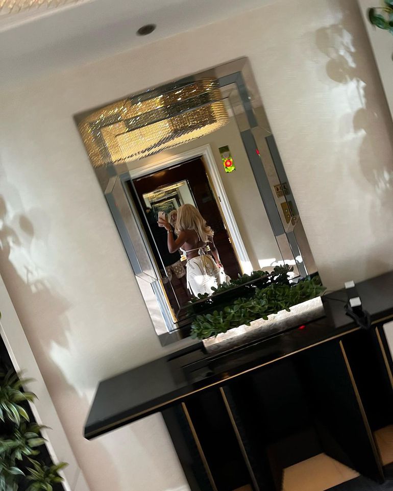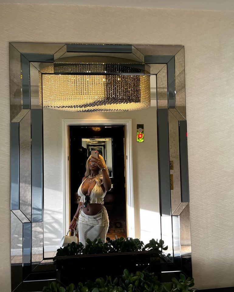 This week, she uploaded a photo dump of herself donning a Two piece set women's beach dress featuring a Lace up Bra Top and a hollow-out maxi skirt while posing for a hot mirror selfie and showing off her dashing curves.