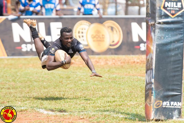 Arnold Atukunda makes a try for the Stanbic Black Pirates during the Kyabazinga 7s |Uganda Rugby Union