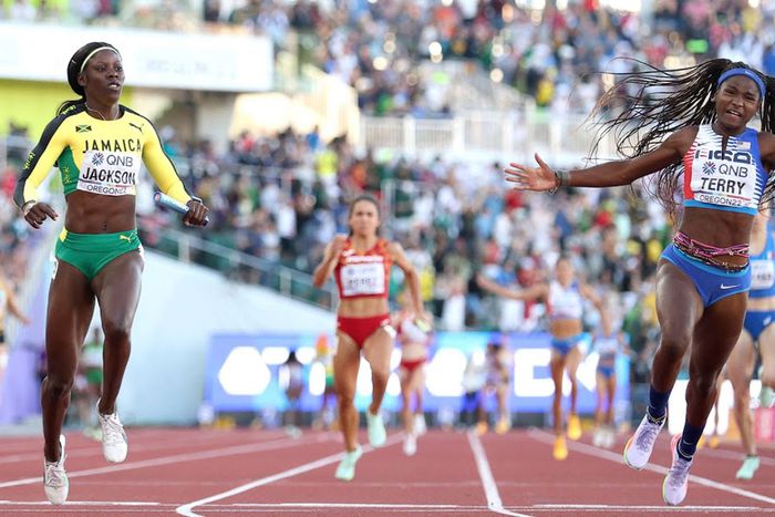 Jefferson, Steiner, Jenna Prandini, and Terry formed the winning quartet. Jefferson blazed through the first leg with an 11.35 split, handing the baton to Steiner, who outpaced Jamaica’s Thompson-Herah to maintain Team USA's lead.