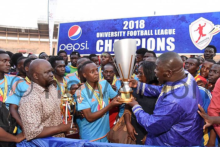 Kyambogo University celebrate winning the 2018 University Football League final| New Vision