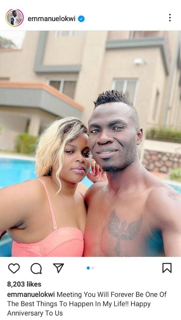 "Meeting you will forever be one of the most cherished moments of my life! Happy anniversary to us," Okwi posted.