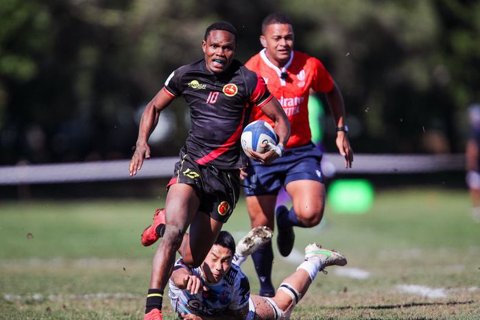 Uganda’s Adrian Kasito goes past a South Korean opponent during the completion | Photo by IRB