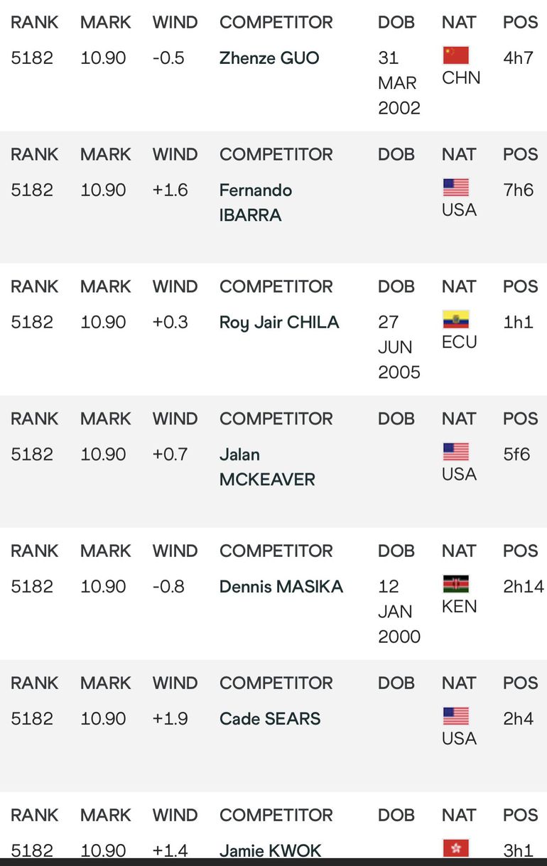 That would put him =63rd on the WOMEN’S 100m all-time list 😊 https://t.co/S77r0KUsBm