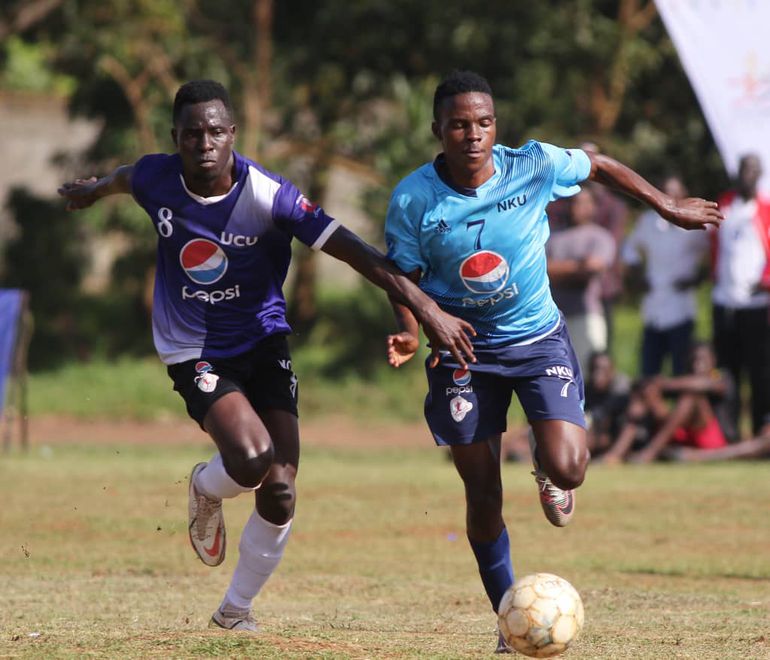 UCU's Allan Opio takes on a player from Nkumba University in last year's edition| courtesy photo