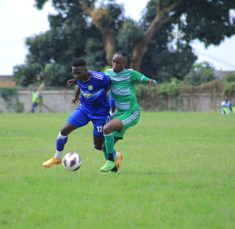 URA FC's new signing Laban Tibiita (L)'s efforts did not yield anything on his debut against UPDF | Photo Credit: URA FC