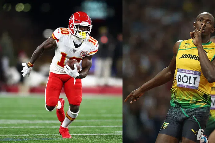 "Probably Tyreek," Sharpe said, adding, "Usain Bolt has probably not run since he last ran the 2017 World Championships in which he won the bronze, so I will take Tyreek."