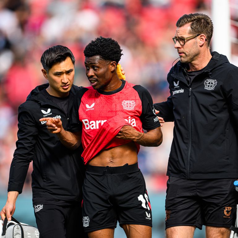 The bigger concern for Leverkusen was Nathan Tella, who was forced off after a heavy collision with Union goalkeeper Frederik Ronnow while chasing a loose ball.