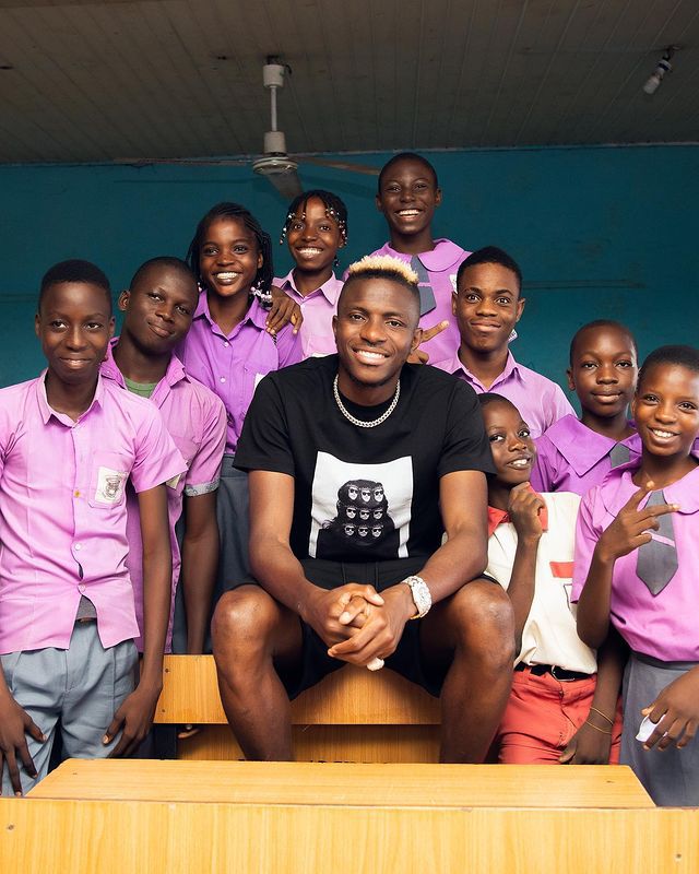 Victor Osimhen: Super Eagles star makes students at Oregun happy