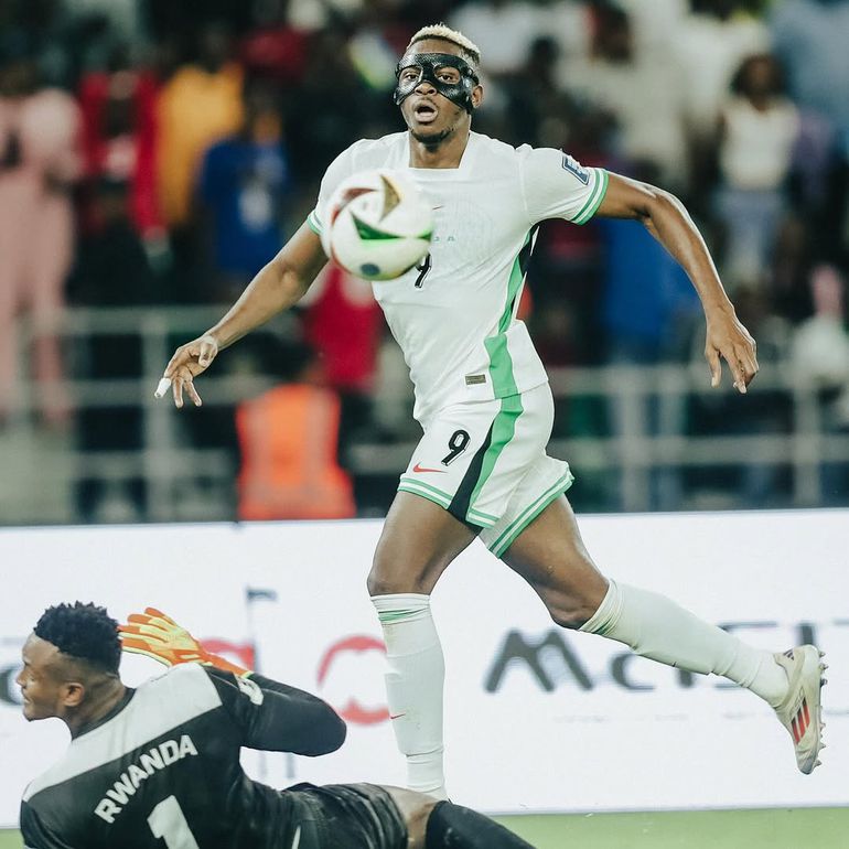 Nigeria’s masked marvel, Victor Osimhen, earned global applause after his match-winning brace against Rwanda in Kigali, and FIFA was quick to join the chorus of praise.
