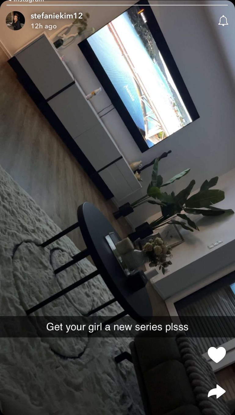 The influencer took to her Snapchat channel to ask her followers to recommend a new movie series to occupy herself with during her vacation.