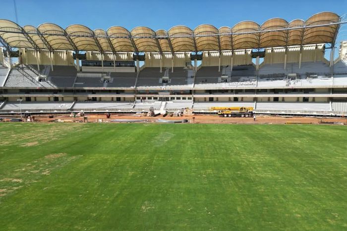 The playing field is steadily taking shape, with a lush green grass cover nearly complete. Only a few patches remain, but contractors are optimistic the surface will be ready well before the tournament begins.