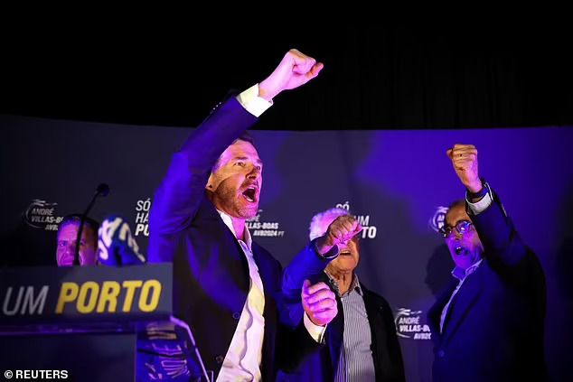 Sporting a Porto shirt and scarf, Villas-Boas led his supporters in chants of 'Porto' outside his campaign headquarters, exclaiming, "Porto is free again."