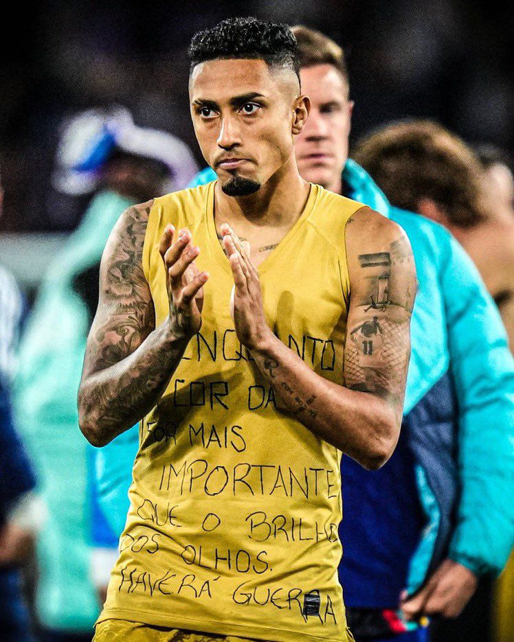The Brazilian was substituted in the 63rd minute for Ferran Torres as he removed his shirt to reveal a message that read: