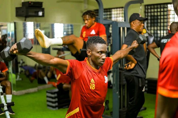 Cromwell Rwothomio in a gym session at Kitende. Vipers Image