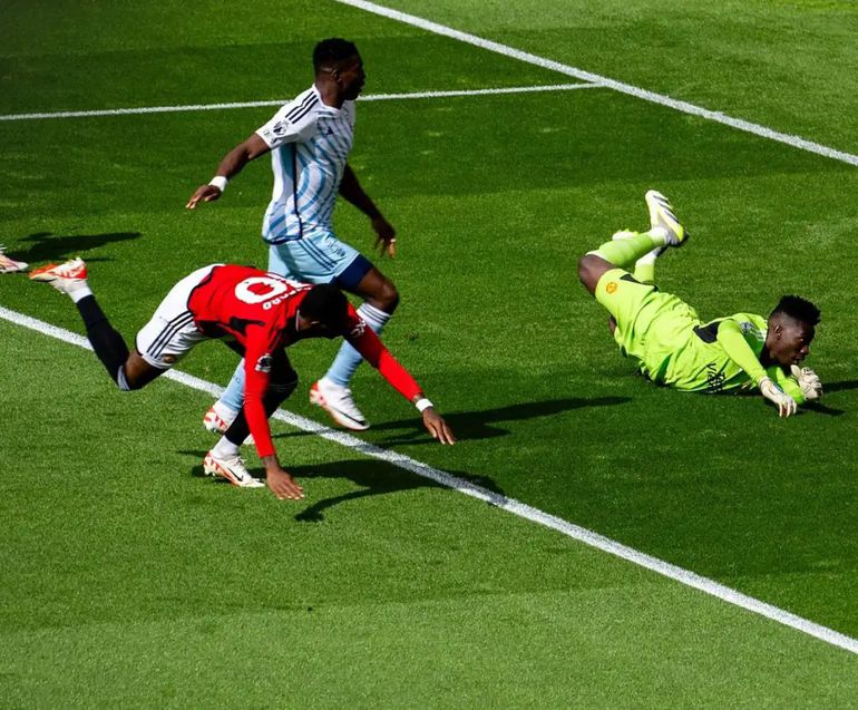 After masterfully maneuvering past his markers, Awoniyi expertly drilled the ball past Manchester United's goalkeeper, Andre Onana.