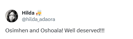 Solidifying her status as Africa’s number one, the 28-year-old also witnessed his compatriot and friend, Osimhen’s proud moment as the duo restored Nigeria’s past glory.