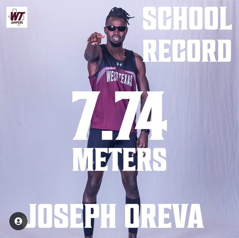 Joseph Oreva smashed West Texas University indoor SR in the long jump