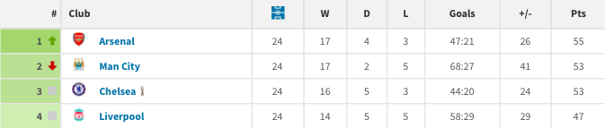 Interestingly, Liverpool — the side that eventually ran Pellegrini’s men close — were seven points off the North London side after gameweek 24.