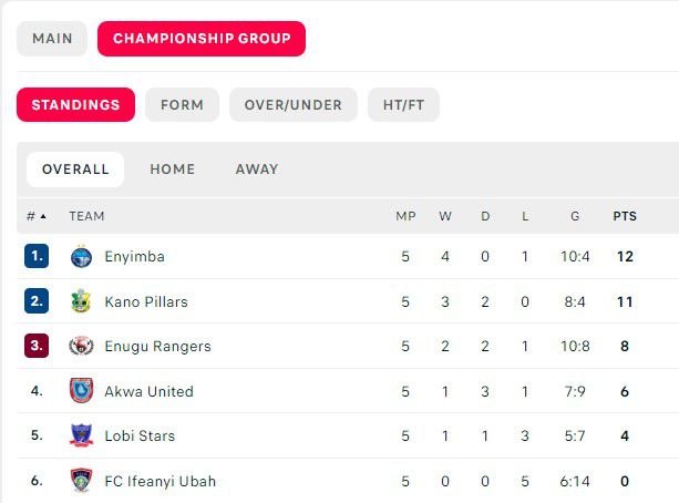 Kano Pillars finished in a close second, with Rangers, Akwa United, Lobi Stars and FC IfeanyiUbah coming in as third, fourth, fifth and sixth respectively.