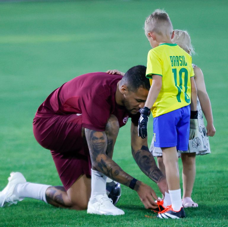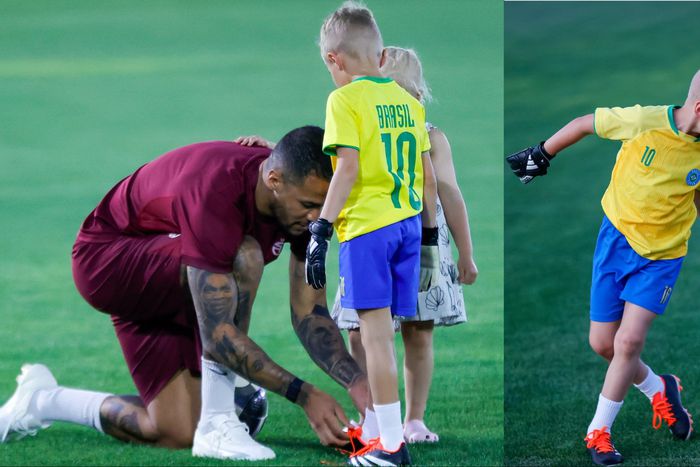 Ekong's son in the post, stood out by wearing a Brazil national team jersey while joining the Al-Kholood players on the field.