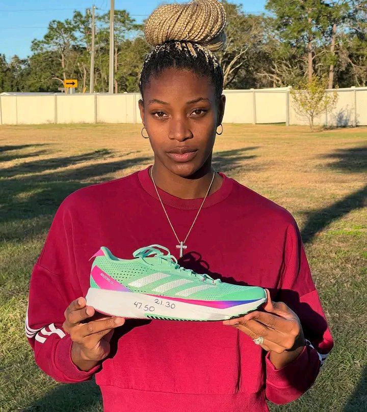 Early January, Miller-Uibo posted on her social media platforms her goals of breaking the World Records (WR) in both events, posting a picture with her Adidas running shoes and writing 21.30s and 47.50s, which are times that break the current WRs in both events.