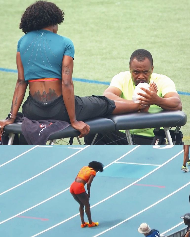 The Jamaican track legend finished eighth in the race in 11.48s (-2.1) but immediately removed her spikes and was limping. A few moments later, she was carried off the track, and there are concerns that her Achilles injury suffered in the past two years may be back, thus may halt her progress ahead of the Jamaican trials and competing at the Paris Olympic Games.
