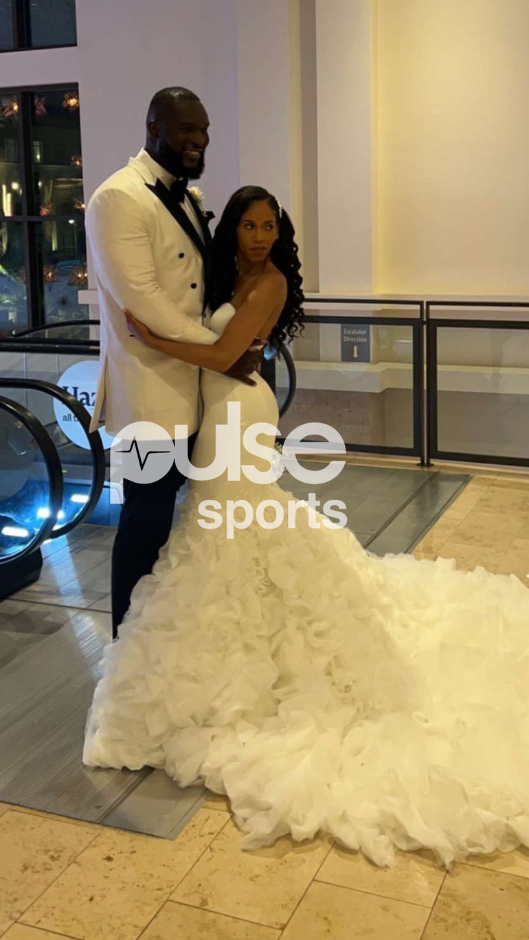 Omos yesterday tied the knot officially with his longtime partner Cheyenne Quailey.