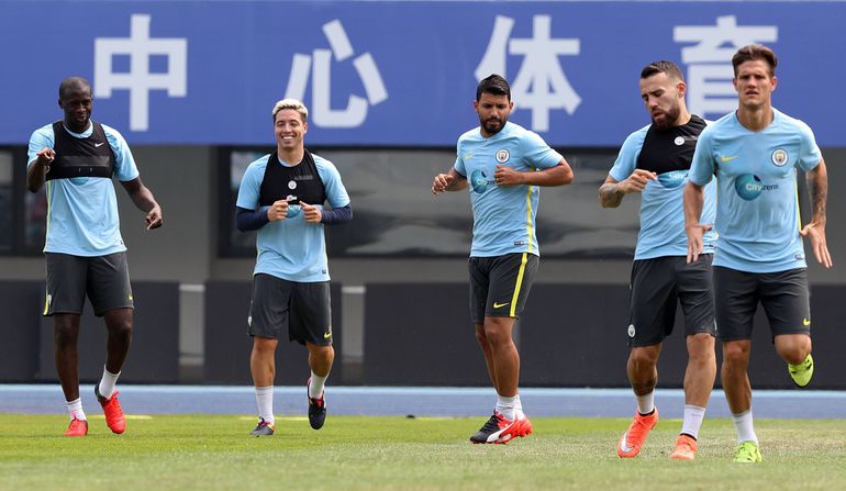 Sergio Aguero (C), Samir Nasri (2nd L) and Yaya Toure (1st L) of Manchester City take part in the training session for the match against Manchester United ManU FC of 2016 International Champions Cup China soccer tournament \\ iMAGE CREDIT: iMAGO