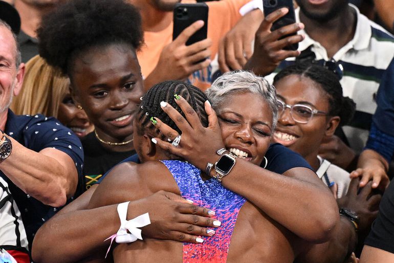 Noah Lyles and his mother Keisha Cane at the 2024 Paris Olympics | IMAGO