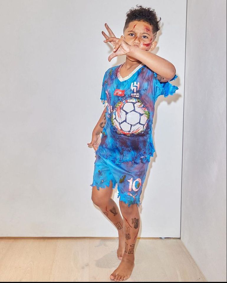 Kim Kardashian's son Saint West, dressed up as ex-Barcelona forward Neymar for Halloween.